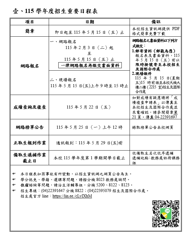 參、Please refer to the admissions brochure as listed below for details. (詳情請參閱以下的招生簡章。)